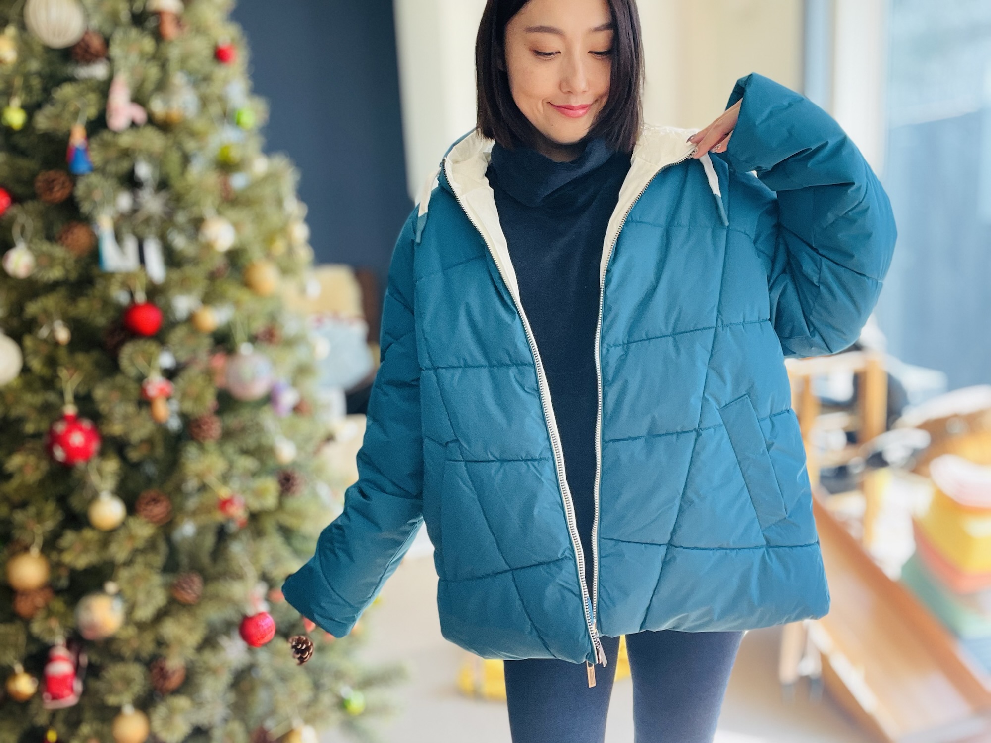 (私は自転車の時下側だけ開けて着ると思います)