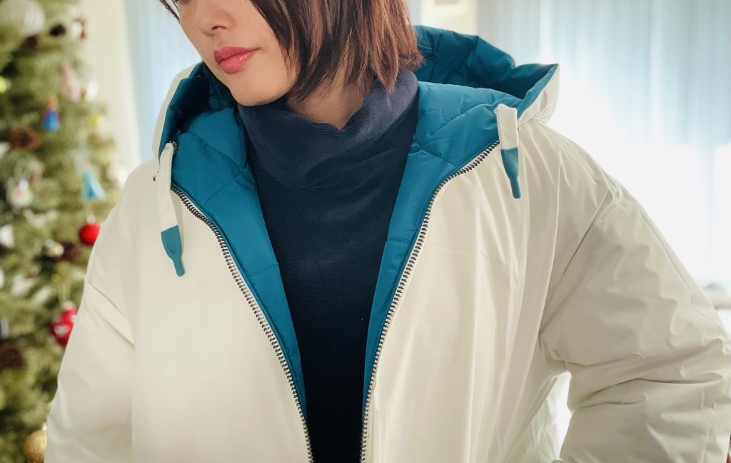 (私は自転車の時下側だけ開けて着ると思います)